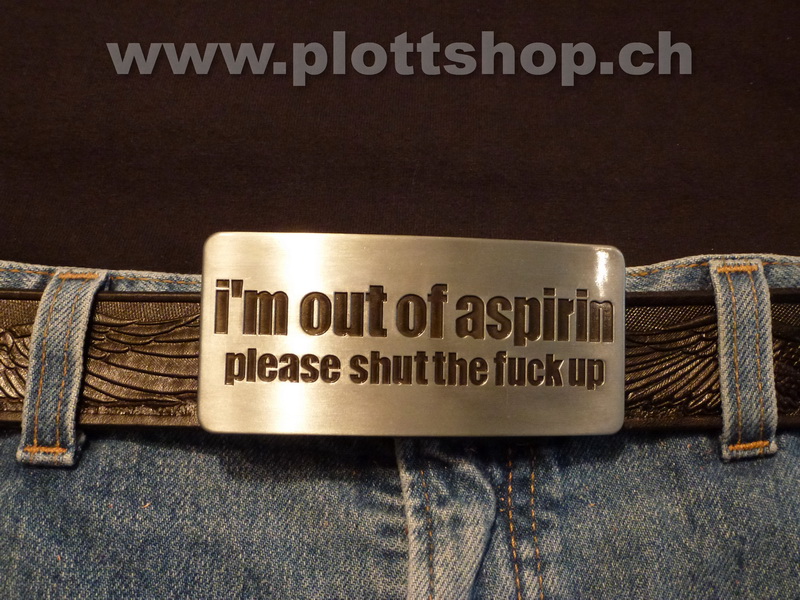 Buckle I'm out of aspirin please shut the fuck up. Habe keine Aspirin mehr - bitte, halt die Klappe...