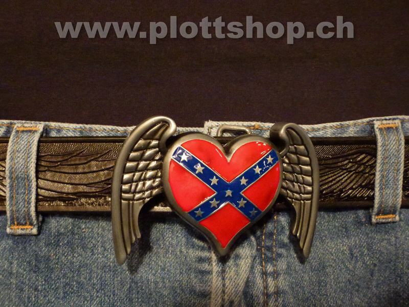 Buckle Heart Herz Rebel Flag Südstaaten Amerika, USA