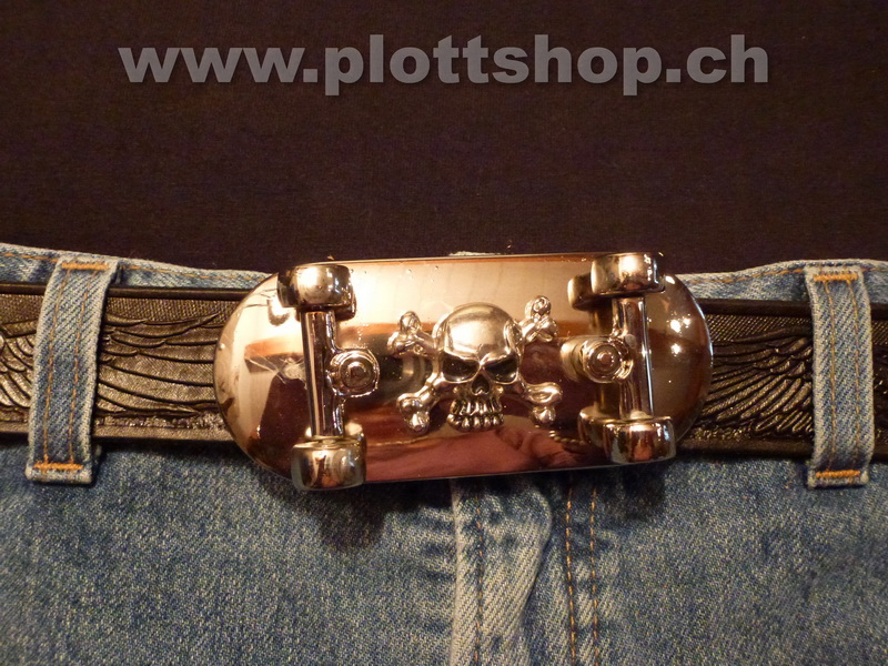 Buckle Skateboard Rollbrett chrom 3D Skull beweg.
