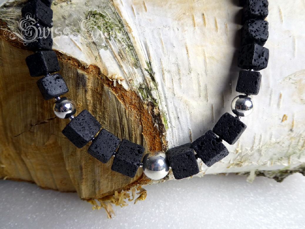 Halskette Lavastein schwarz 40cm Würfel Kugeln